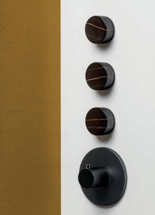 Two control levers are located on either side of the tap body. The ZIS4641.P91 is made from marble and brass, making it a limited edition model. When you order this mixer tap, three different finishes and sizes will be available. Brushed copper with white marble handles, matt black with black marble handles and metallic black with emerald marble handles.