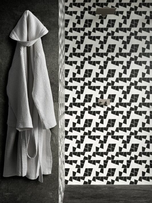 Parfaite synthèse de savoirs traditionnels ancestraux et d’innovation industrielle du grès cérame, la collection présente une vaste série de décors, depuis les classiques Quadri et Segni à Bolli, Triangoli et la structure 3D Bande, plus minimalistes et géométriques.
